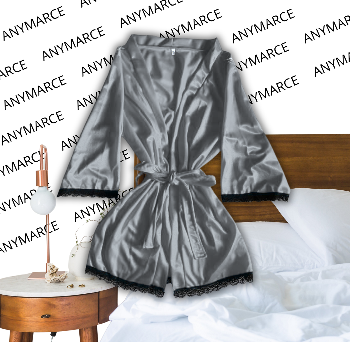 A diferencia de otras telas suaves con brillo, nuestras batas están hechas de acetato satinado lo cual hace que la bata sea más elastizada, con caida y no es fría! Los detalles en los bordes son de puntilla de algodón, suaves y elastizados. Incluye un lazo para pasar por las presillas y atarlas.