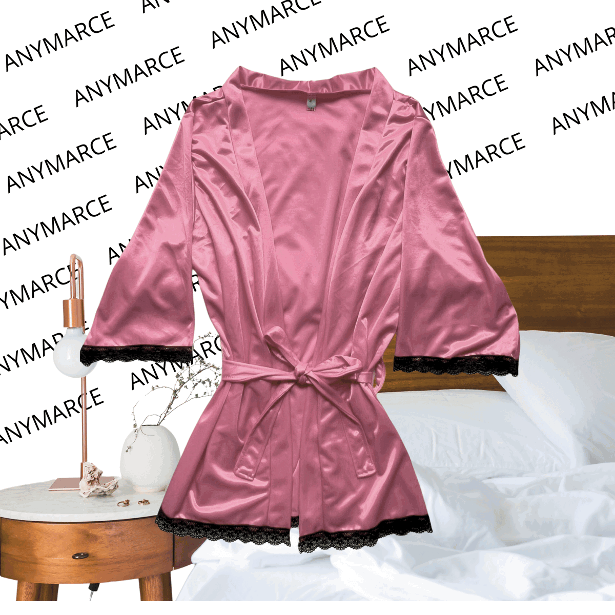 A diferencia de otras telas suaves con brillo, nuestras batas están hechas de acetato satinado lo cual hace que la bata sea más elastizada, con caida y no es fría! Los detalles en los bordes son de puntilla de algodón, suaves y elastizados. Incluye un lazo para pasar por las presillas y atarlas.