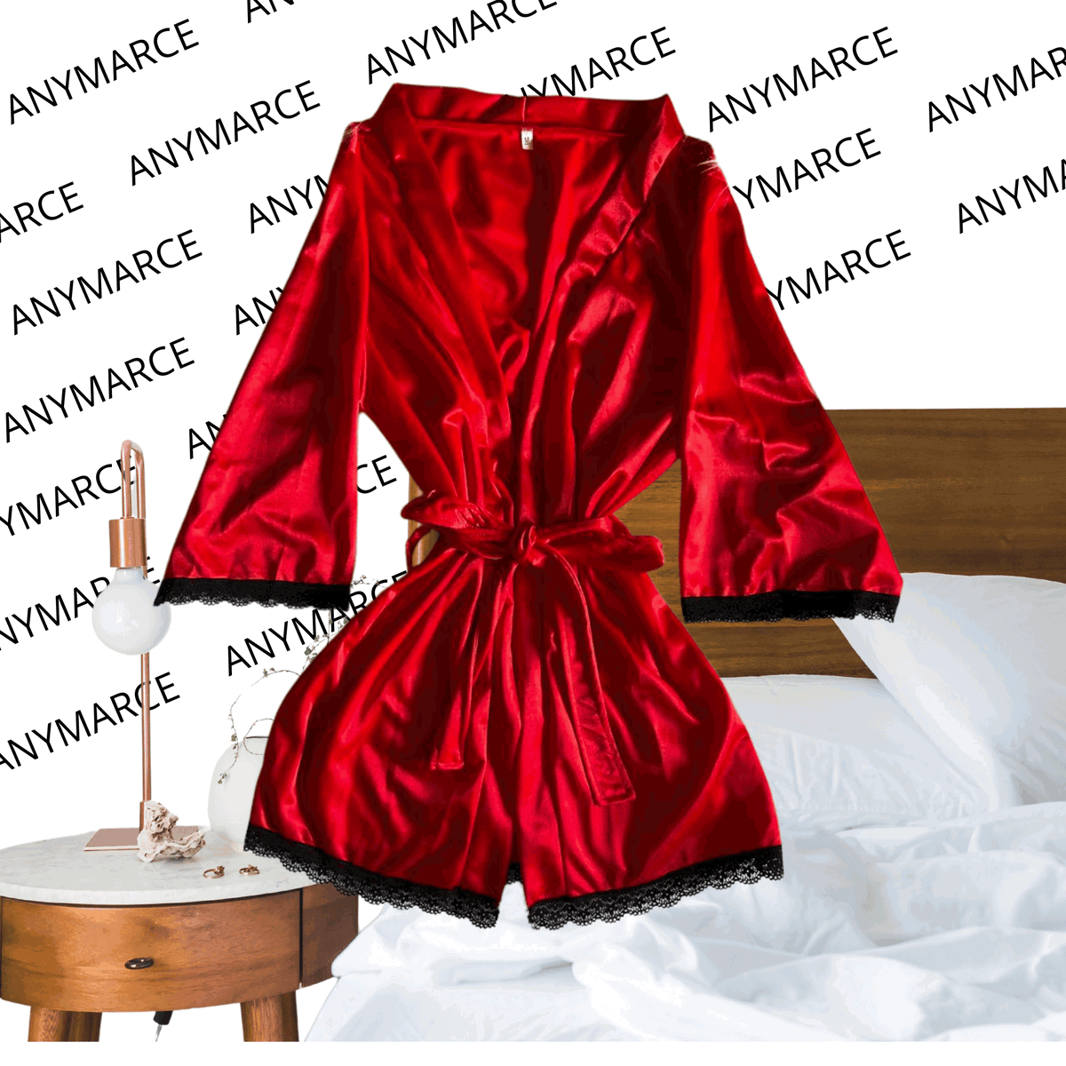 A diferencia de otras telas suaves con brillo, nuestras batas están hechas de acetato satinado lo cual hace que la bata sea más elastizada, con caida y no es fría! Los detalles en los bordes son de puntilla de algodón, suaves y elastizados. Incluye un lazo para pasar por las presillas y atarlas.