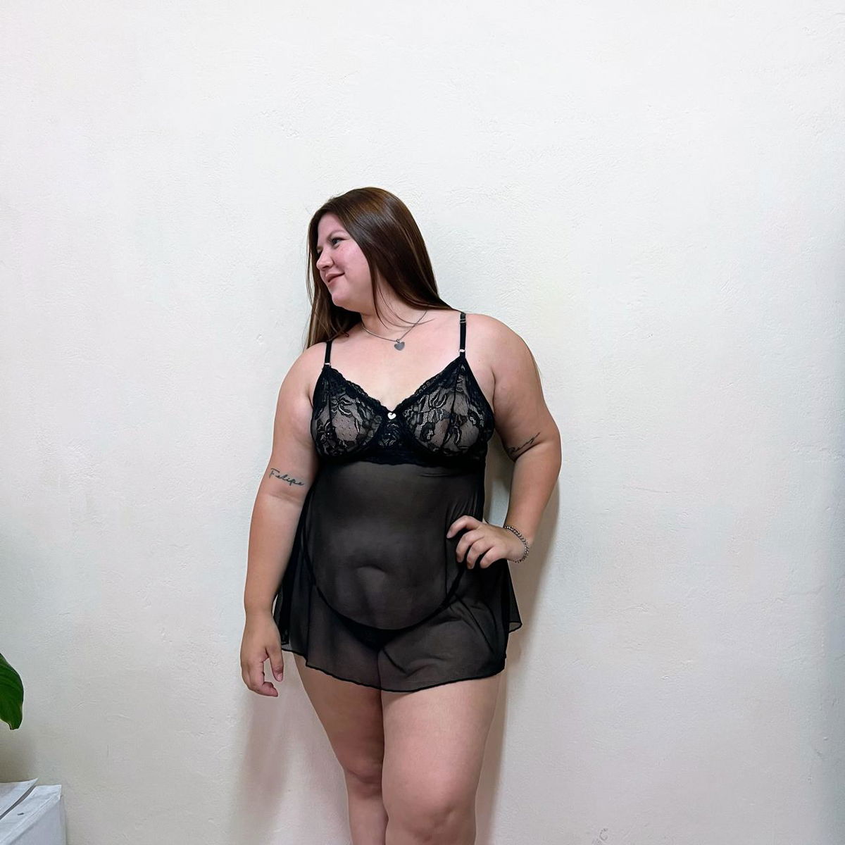 El resto de la prenda está confeccionado en suave microtul, que se desliza por tu piel con una ligereza y transparencia que te va a encantar. ¿El detalle que lo hace irresistible? Su abertura trasera que insinúa con elegancia y te invita a explorar tu lado más sensual.